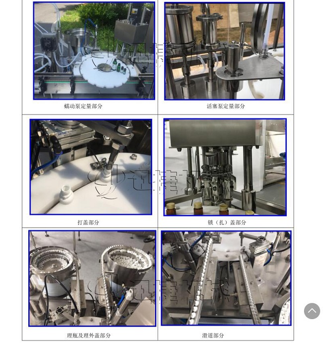 本機由我公司自主研發的一款醫用診斷試劑灌裝機旋蓋機,能同時完成自動理瓶、自動上瓶、定量灌裝、自動理蓋、上蓋和旋蓋封口等動作。本機采用日本全進口高精度封閉式凸輪分度工位器,精度高,運行可靠,使用壽命長。該分度器結構簡單,長期使用無需維修。該型號設備主要用于ⅣD體外診斷試劑制藥、生物制藥行業及科研領域裝。機器設計緊湊合理、外形簡潔美觀,灌裝量調節方便。