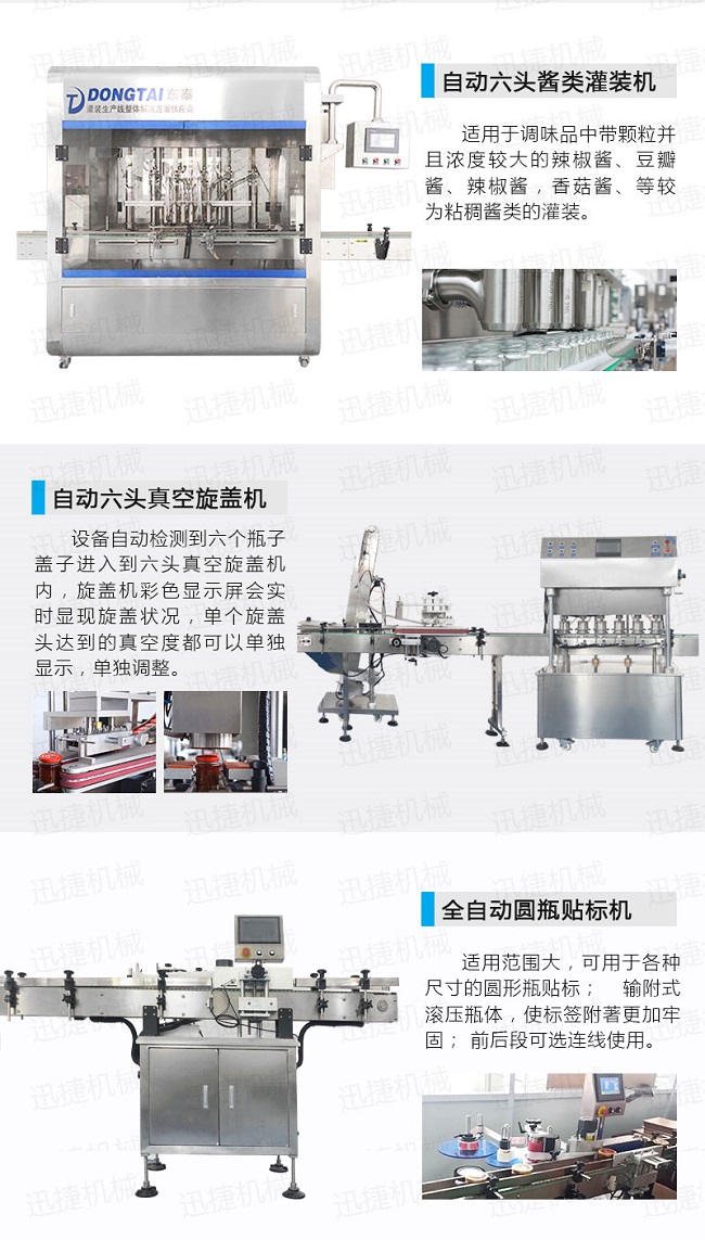 自動化醬料灌裝旋蓋貼標生產線優勢:
