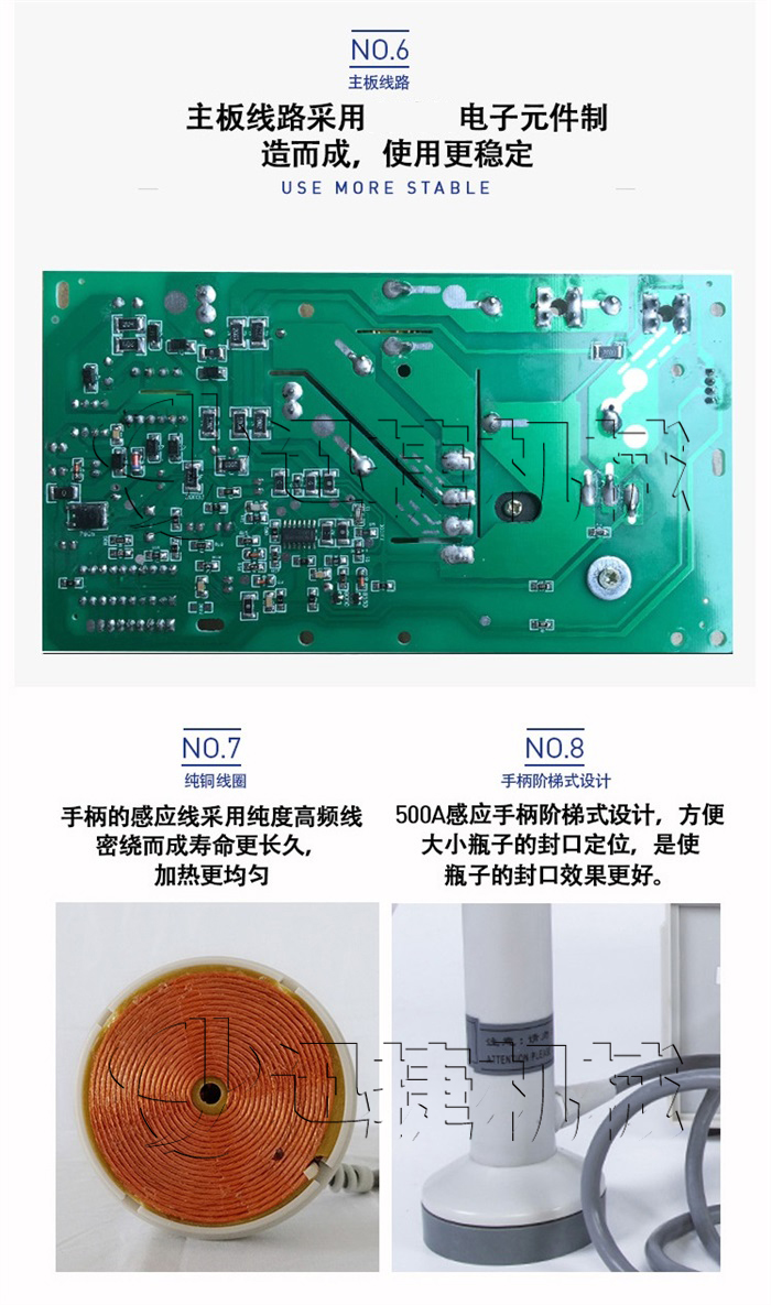 該該封口機(jī)為手持式鋁箔封口機(jī),是一種便攜式電磁感應(yīng)加熱封口設(shè)備,專為制藥、化工、農(nóng)藥、食品、化妝品、輕工行業(yè)對(duì)容器進(jìn)行鋁箔嚴(yán)密封口,封口材質(zhì)使用廣泛。