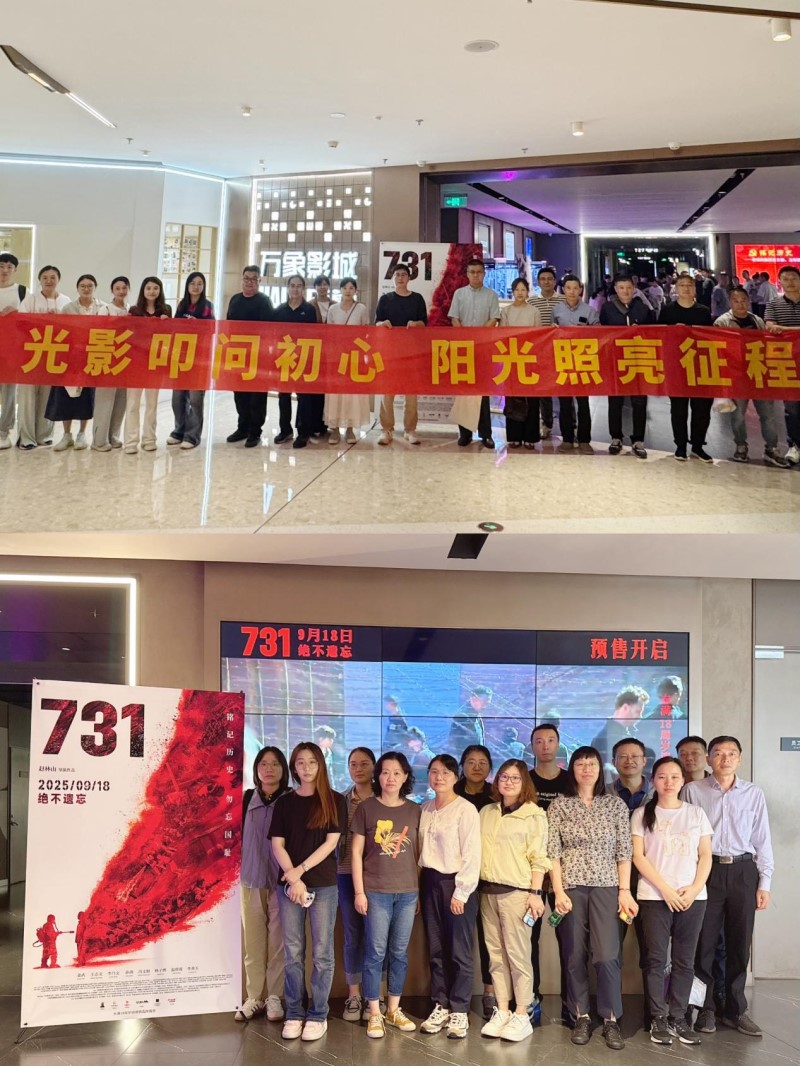 《731》影片以詳實史料揭露了侵華日軍731部隊在二戰期間進行人體實驗、細菌戰等反人類罪行,直觀展現了戰爭殘酷與和平珍貴。觀影現場氣氛凝重,員工們神情專注,深受震撼。