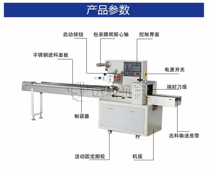 該包裝機為全自動枕式包裝機,適用于各種固型產品的包裝,如食品類(方便面、面包、漢堡、餅干、雪糕、冷凍食品),日用品(肥皂、餐巾紙),五金配件,機械零件(軸承),橡膠制品(輪胎)等產品的枕式包裝。